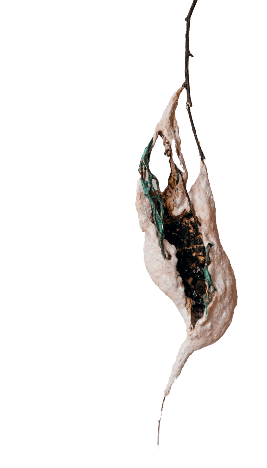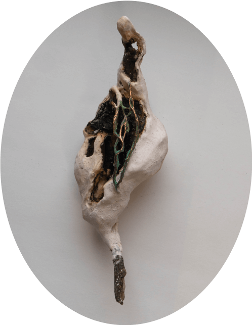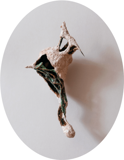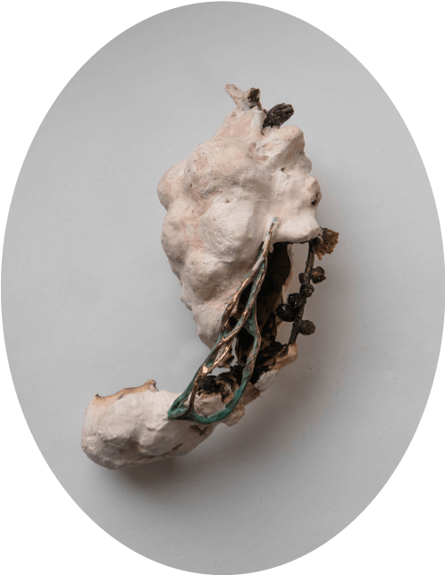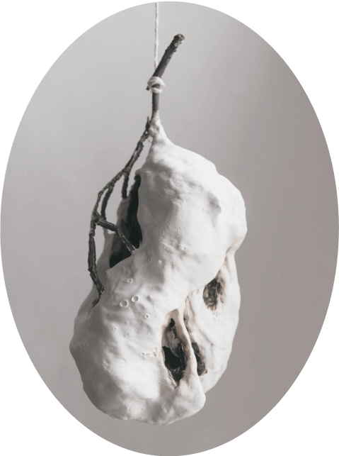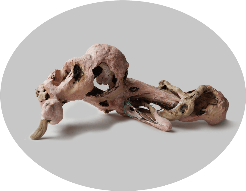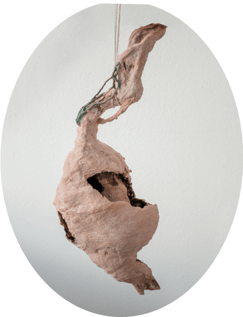 Напоминающие коконы и гнезда, объекты из этой серии всегда начинаются с найденного природного материала, который был изъят из привычной среды и перенесен в новый контекст. Трансформация первоначальной находки происходит через процесс пеленания/бинтования/укутывания: множество слоев тонкой бумаги, в которую завернут предмет, создает вокруг него кокон. Позже этот кокон обретает плотную оболочку из гипса или бетона.