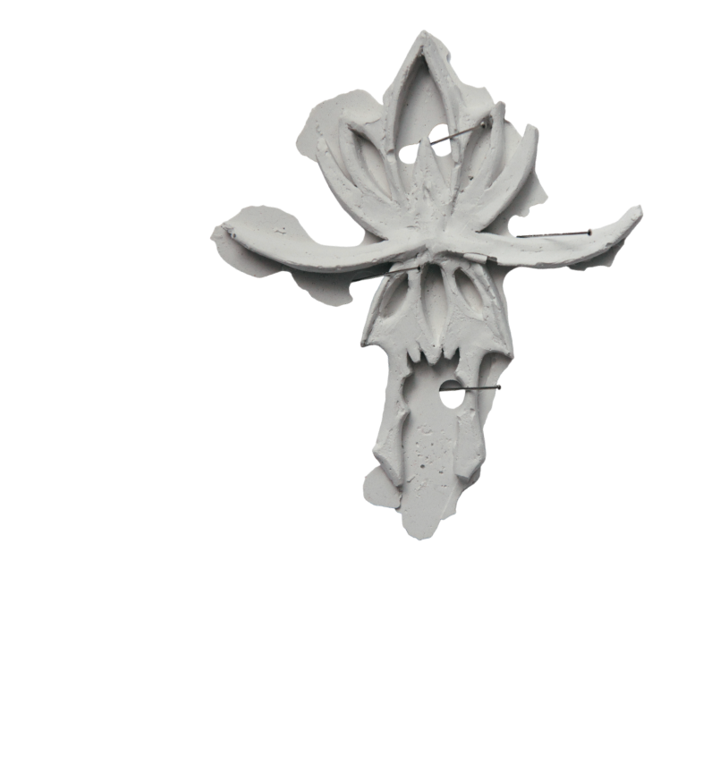 С отсылкой к биологическим коллекциям и Wunderkammer, физические слепки здесь организованы в жесткую структуру паттерна, что говорит о попытке каталогизировать и установить контроль над продуктами воображения.